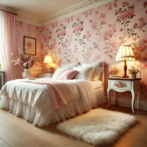 Transformar um quarto com papel de parede romântico pode ser uma maneira eficaz de criar um espaço acolhedor e elegante. Imaginemos um quarto onde o papel de parede apresenta um padrão suave de flores em tons pastel. Este estilo é perfeito para criar uma atmosfera tranquila e reforçar a sensação de conforto. Para complementar essa decoração, escolha uma roupa de cama em cores neutras, que permita que o papel de parede brilhe sem sobrecarregar o ambiente.